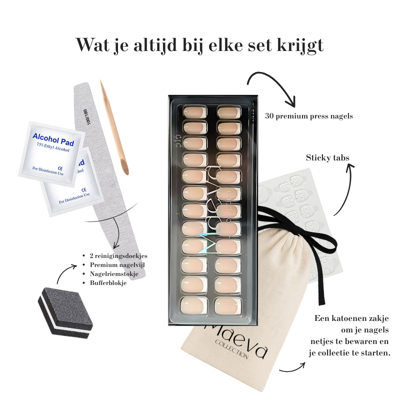 Bij Maeva Collection vind je stijlvolle press-on nagels voor een verzorgde manicure thuis, zonder salonafspraak en zonder UV-lamp.