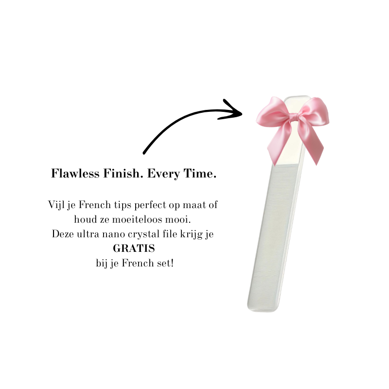 - Extra : Omdat French tips net dat tikkeltje meer zorg vragen, krijg je speciaal bij deze set een GRATIS Crystal Nail File. Deze luxe vijl helpt je nagels perfect te onderhouden en je French tips fris en crisp te houden.