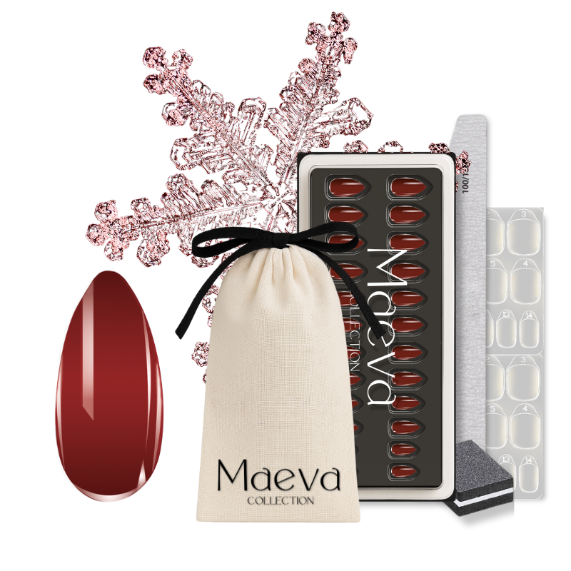 Khloé is een zachte almondvormige press-on in een rijke rode tint, afgewerkt met een uniek en elegante glans.